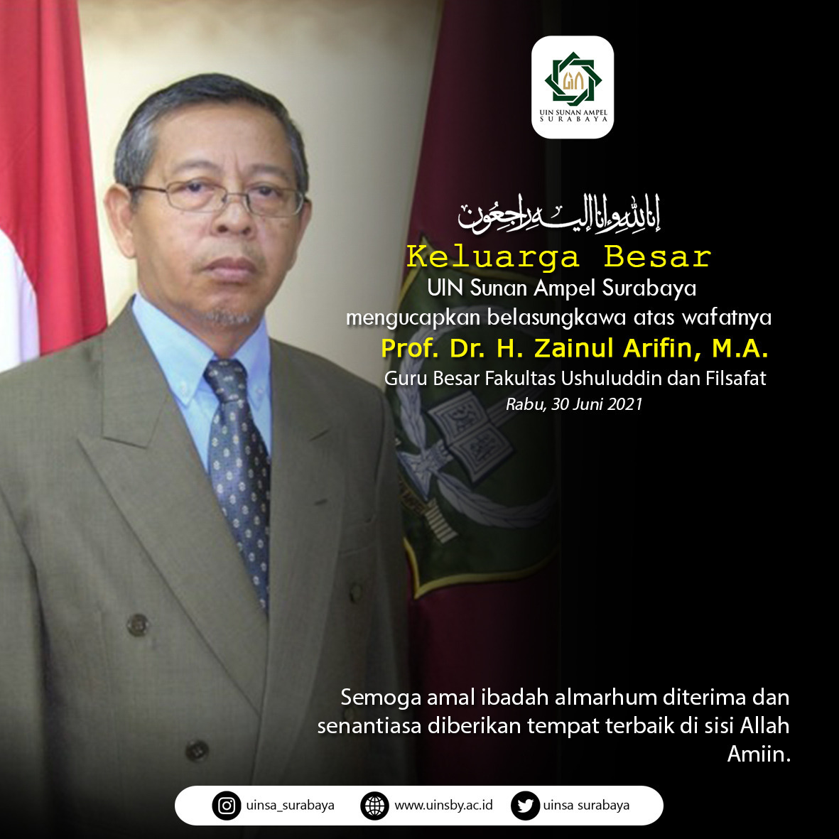 Selamat menuju ke alam kubur Prof Zainul. Kita semua meyakini bahwa Panjenengan adalah orang baik, yang bermanfaat bagi dunia pendidikan dan juga masyarakat. Kita berkeyakinan bahwa panjenengan adalah bagian dari ahli surga. Amin. Lahu al fatihah.